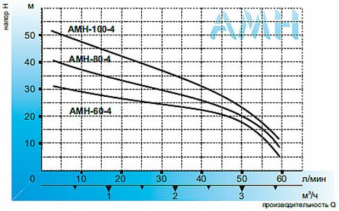 | AMH-60-4 | 0.5 | 0.37 | напор Н, м | 31 | 28 | 26 | 24 | 22 | 17 | 5 | до 8 | 1" | 1" |
