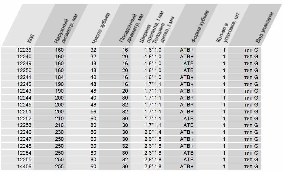 - предназначены для продольных и поперечных распилов благодаря использованию переменных зубьев АТВ;